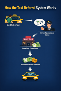 The problem begins when certain venues start offering much higher commissions to taxi drivers. When the rewards increase significantly, the driver’s recommendation is no longer based on what the guest is actually looking for, but rather on where the driver receives the highest payment.
