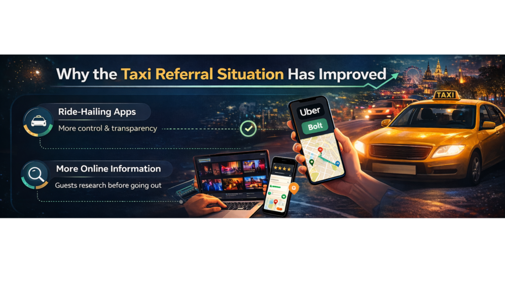 Even though the situation has improved over the years, taxi referrals can still influence where guests end up during a night out.